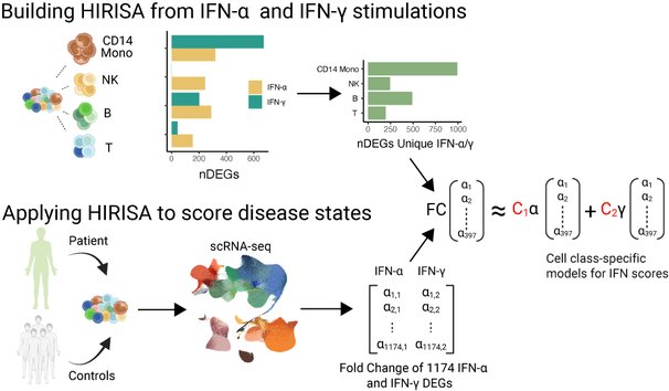 We analyzed the HIRISA dataset to develop a novel scoring approach for cell population-specific Type I and Type II IFN responses. To make the HIRISA dataset and our scoring algorithm accessible to other researchers, we provide interactive tools for scoring your own data and exploring our dataset below:
