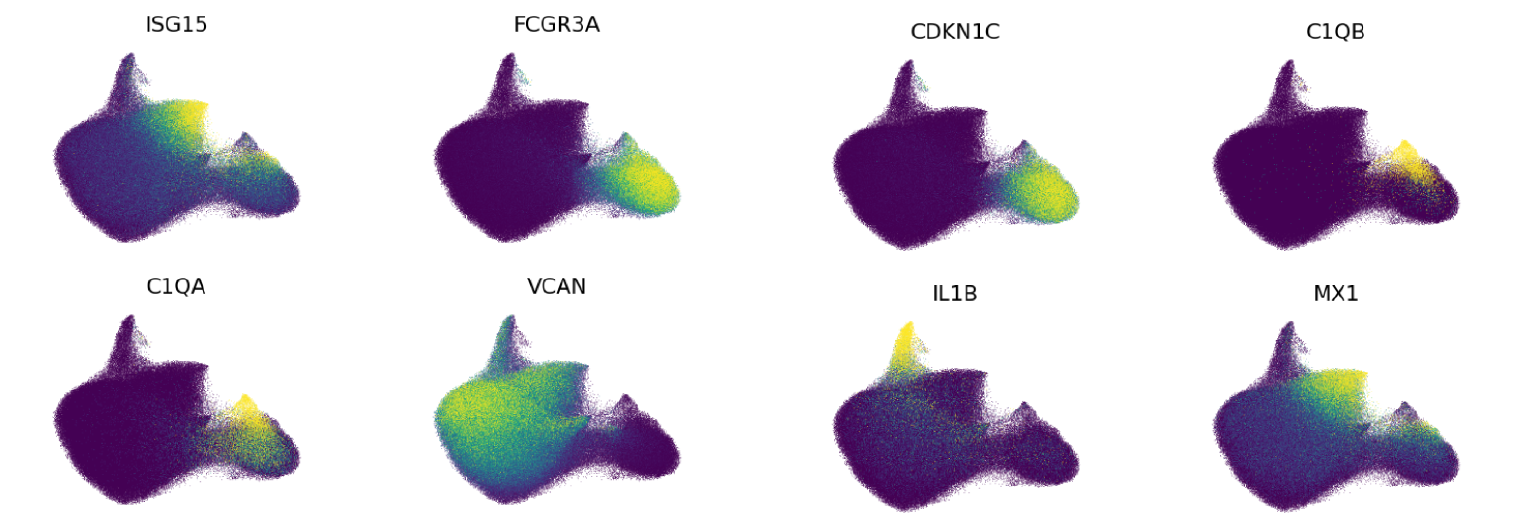 - CD16 monocyte: CD16 monocytes are distinguished by high expression of the gene encoding the CD16 surface marker (FCGR3A), as well as cyclin dependent kinase inhibitor 1C (CDKN1C), and leukocyte specific transcript 1 (LST1).
