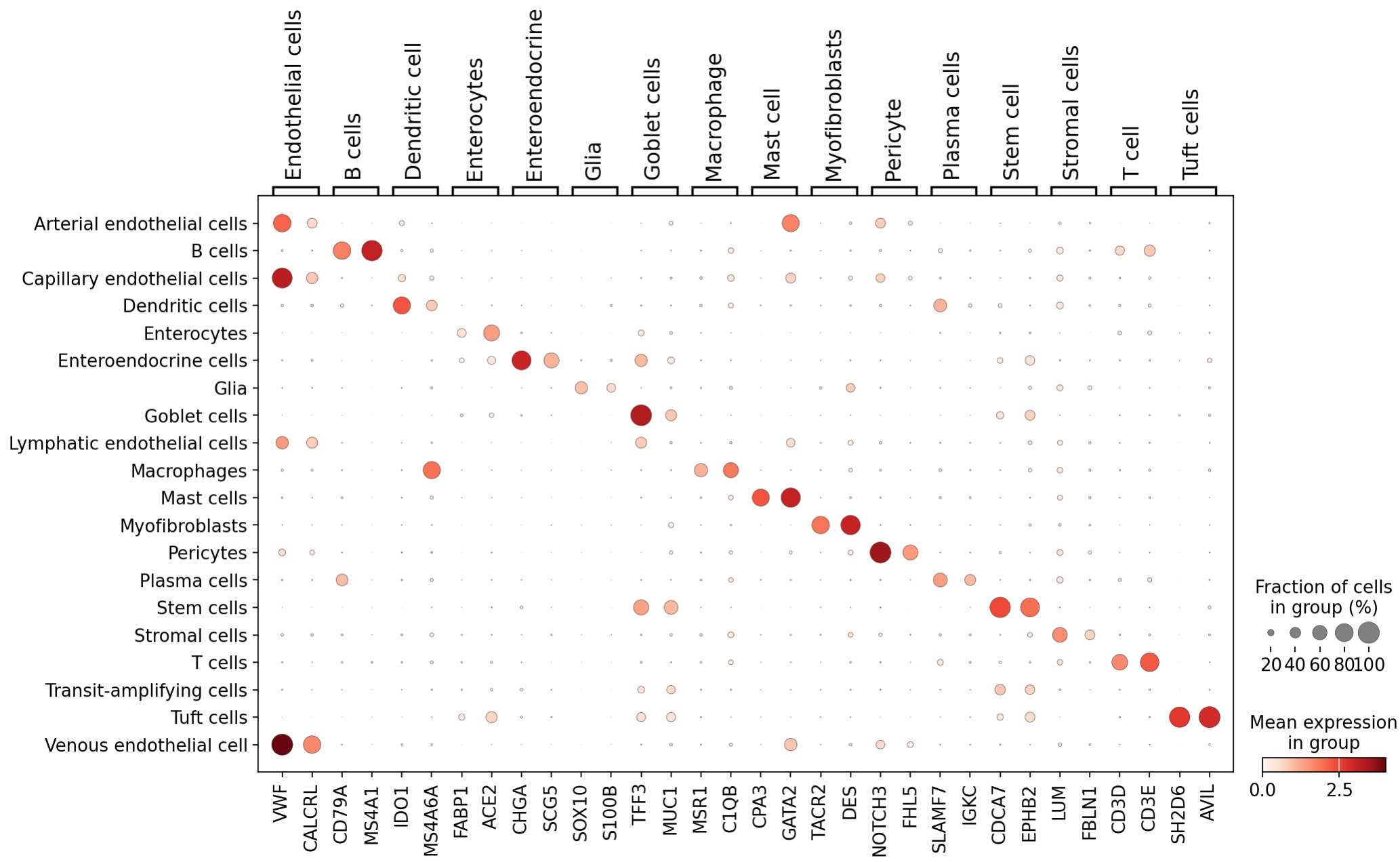 After projection, we were able to identify distinct markers for most of these duodenum cell types thanks to the large transcriptomic coverage provided by the Atera data:
