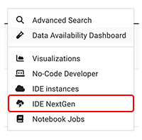 A. In the HISE top navigation menu, choose RESEARCH > IDEs.