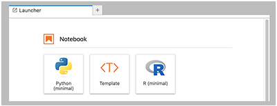 4. On the Launcher tab of your open (new or restarted) IDE, in the Notebook section, choose Python or R.