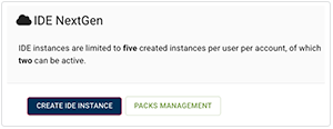 A. To create a new IDE, click CREATE IDE INSTANCE. Then follow the remaining instructions (Steps 6-10) in Create Your First HISE IDE (Tutorial).