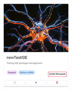 C. In the lower-right corner of the card for each running or stopped IDE, note the monthly spending (in this case, $138.70), or click the card for details.