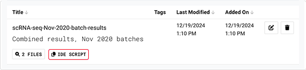 - Save a group of pipeline output files, such as QC reports or labeled scRNA-seq files.
