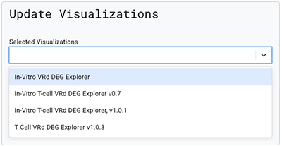 B. In the Update Visualizations dialog box, in the Selected Visualizations field, click the arrow to the right, and choose a saved visualization from the drop-down list. Repeat this step for each visualization you want to attach.