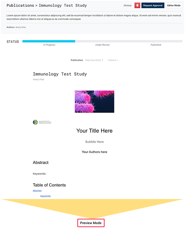 8. (Optional) To see how your publication will look in the public portal, click Preview Mode any time before publication.