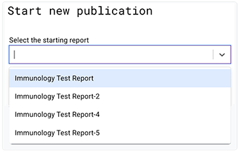 5. In the Start new publication dialog box, in the Select the starting report field, click the arrow and choose a report name from the drop-down list.
