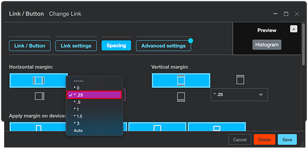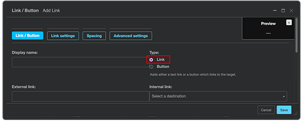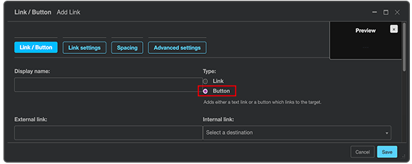 7. (Optional) In the Link/Button dialog box, use Advanced settings to apply your preferred styles.