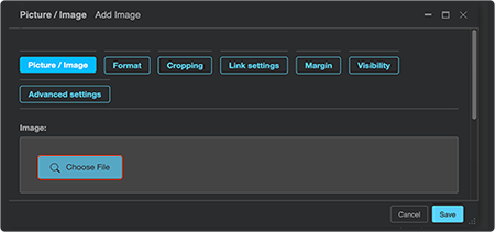 3. In the Picture/Image dialog box, click Choose file, and browse for the image you want to use.
