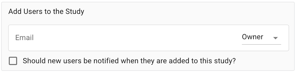 A. To add a collaborator, click into Email field of the Add Users to the Study dialog box.