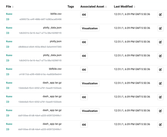 - Tracks the evolution of your data and methods, including your IDE uploads, saved visualizations, and other study assets.