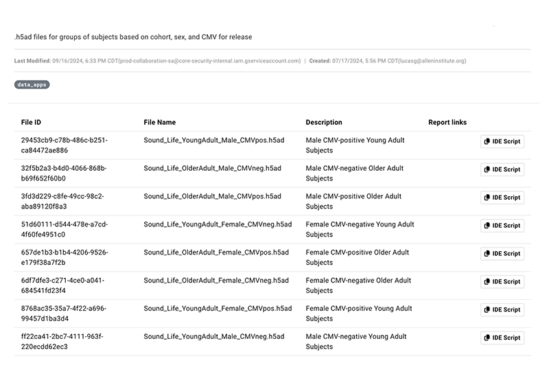 | File Sets | Result files of particular interest can be saved as file sets. These files sets can include reports, such as QC reports, or result files, such as labeled scRNA-seq files from an automated pipeline or files produced by an IDE. | ||||