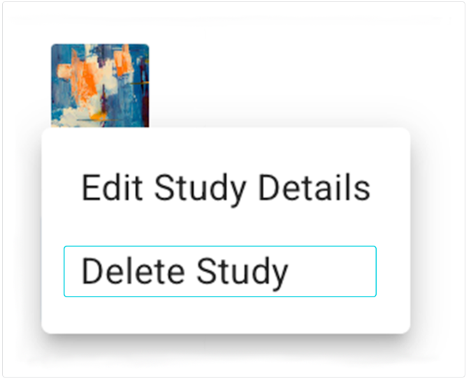 4. On the Study Details tab, click the thumbnail that represents your study. and choose Delete Study.