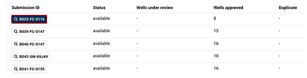 2. On the Sequencing Approval page, in the Submission ID column, click the submission ID for your batch.