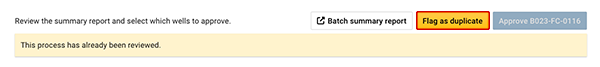 3. Click Flag as duplicate. This process can take some time. We recommend you wait at least 10 minutes to avoid errors that occur when a batch is rerun without the flag in place.