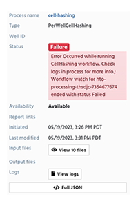 1. Review the process logs to pinpoint where the process failed (see Step 3B, above). Note any errors in the R/Python code.