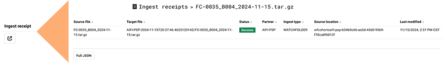 A. To make sure your file was uploaded correctly, click Ingest receipt.