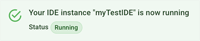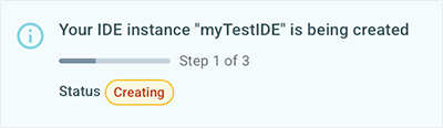 2. On the Select Environent page, click Create IDE instance. (Alternatively, to open an existing instance, click on the card that represents the instance you want to open. To find a particular instance, use the Sort by field to sort existing instances by status or last modified date, or type a keyword into the Search by instance name field.)
