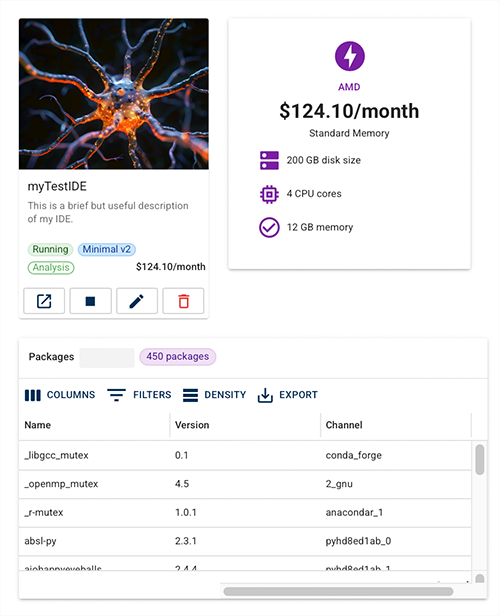 A. On the IDE Details page, review the packages and monthly cost of your instance.