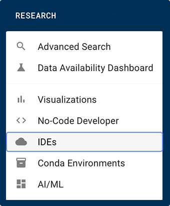 1. From the RESEARCH menu in the top navigation, choose IDEs.