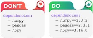 If you create your own .yml file, you must pin the version numbers of your dependencies. Doing so preserves the traceability of your environment and the reproducibility of your work,