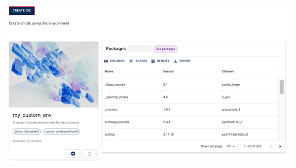 2. On the Conda Environments page, to create an IDE using the new environment you just created, click the card for your new environment.