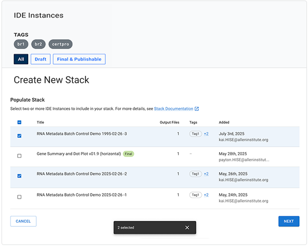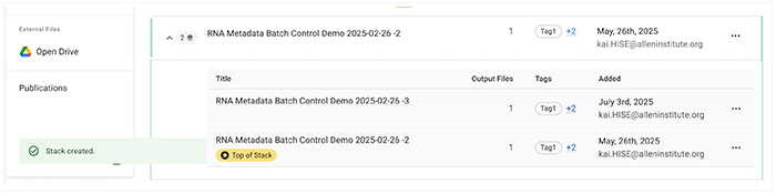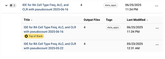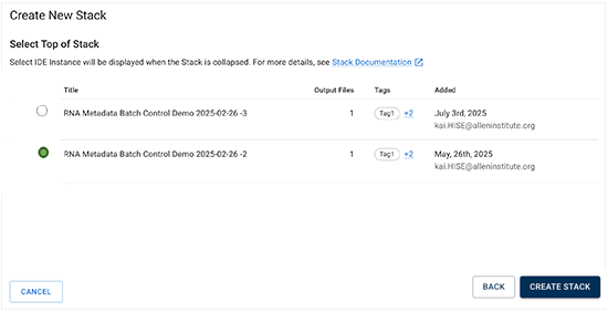 IDE stacking means visibly and functionally linking a set of IDEs for a specific project or other purpose. A stack is like a digital deck of cards, with related IDEs nested together in an expandable row. Stacks inherit and preserve IDE provenance, keeping your work transparent and reproducible. They also decluttter the Collaboration Space, making it easier for contributors to work together efficiently. This document shows you how to do the following:
