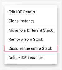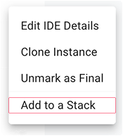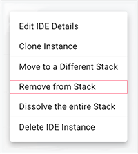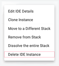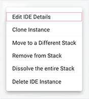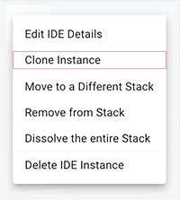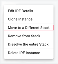 To edit, copy (clone), move, or delete instances from a stack, click the ellipsis next to the IDE you want to change.