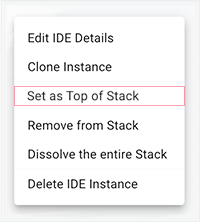 2. Alternatively, to move a secondary-level IDE to the top, click Set as Top of Stack.