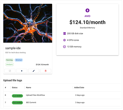 C. For granular information about your file uploads, check the IDE Instances page in the COLLABORATION SPACE. It displays an upload files workflow banner, list view, and detail view. For details, see Work with Studies (Tutorial).