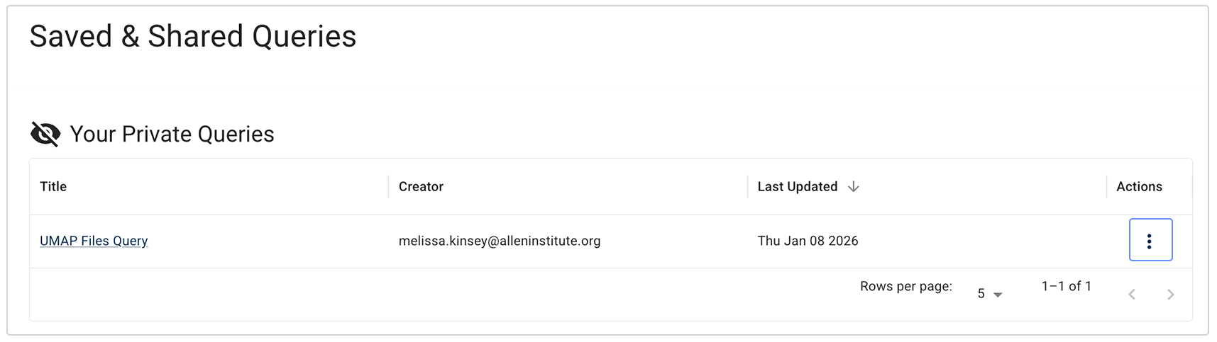 E. On the Saved & Shared Queries, page, in the Your Private Queries field, find the query you want to share. In the Actions column, click the ellipsis.
