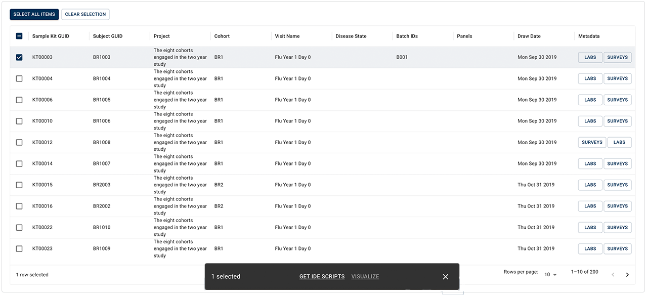 Advanced Search lets you define the subjects, file types, or studies you want to find in HISE. With this powerful feature, you can create queries and filter result files by file, sample, EMR metadata, or public files. You can use your results to create a new file set, add to an existing set, send the data to an IDE for further inspection, or (in some cases) visualize your results. This document explains how to create, save, and share basic queries, as well as how to use your search results.