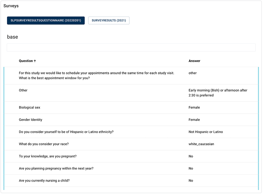 a. In the Metadata column, click SURVEYS.