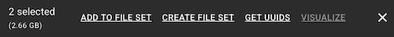 D. In the floating options menu, click the link that represents what you want to do with the returned results, such as ADD TO FILE SET, CREATE FILE SET, or GET UUIDS.![]()