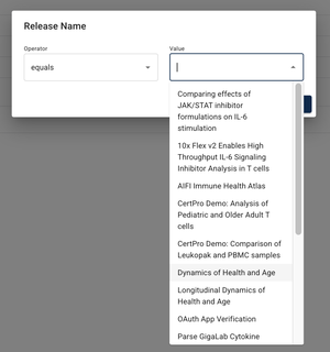 A. In the Release field, choose the Data App or publication associated with the data you want to find.