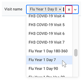 C. Choose visit names. In HISE, a sample represents a single collection, also known as a visit. You can filter for one or more visits by choosing from a list populated by the project cohorts.