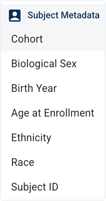 C. Subject Metadata filter group. This filter group targets subject-level information. Use it to find data associated with subjects who share specific characteristics.