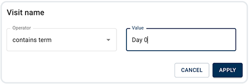 4. To keep the results that appear in the results window, click APPLY. To return to filter selection, click CANCEL.