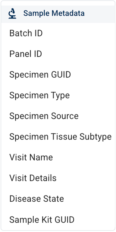 A. Sample Metadata filter group. This filter group pinpoints specimen-level attributes for each sample. Use it to find samples with specific processing histories or biological characteristics.