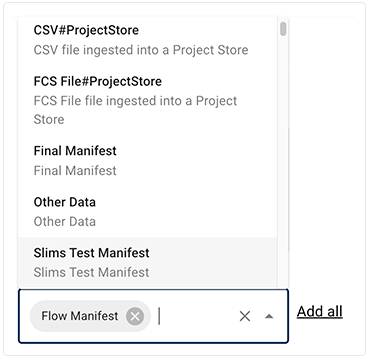 ![]() | ADD TO FILE SET | Use this option to add the selected items to an existing file set that you choose from the Options menu. You can reuse the same collection of files in analyses, visualizations, or Data Apps. For details, see Work with File Sets (Tutorial). |
