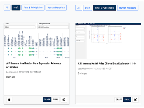 If a visualization is generated using an IDE instance, the instance is cloned and saved to the study at the same time. By default, visualizations are saved in Draft mode. At this stage, you can review the results with your collaborators. If you're not satisfied with the visualization, delete it and upload a replacement. If you're happy with the result, click Final & Publishable.