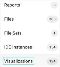 The Visualizations tab in each study houses all visualizations generated using either an advanced search or an IDE instance. Only final visualizations can be used in publications.